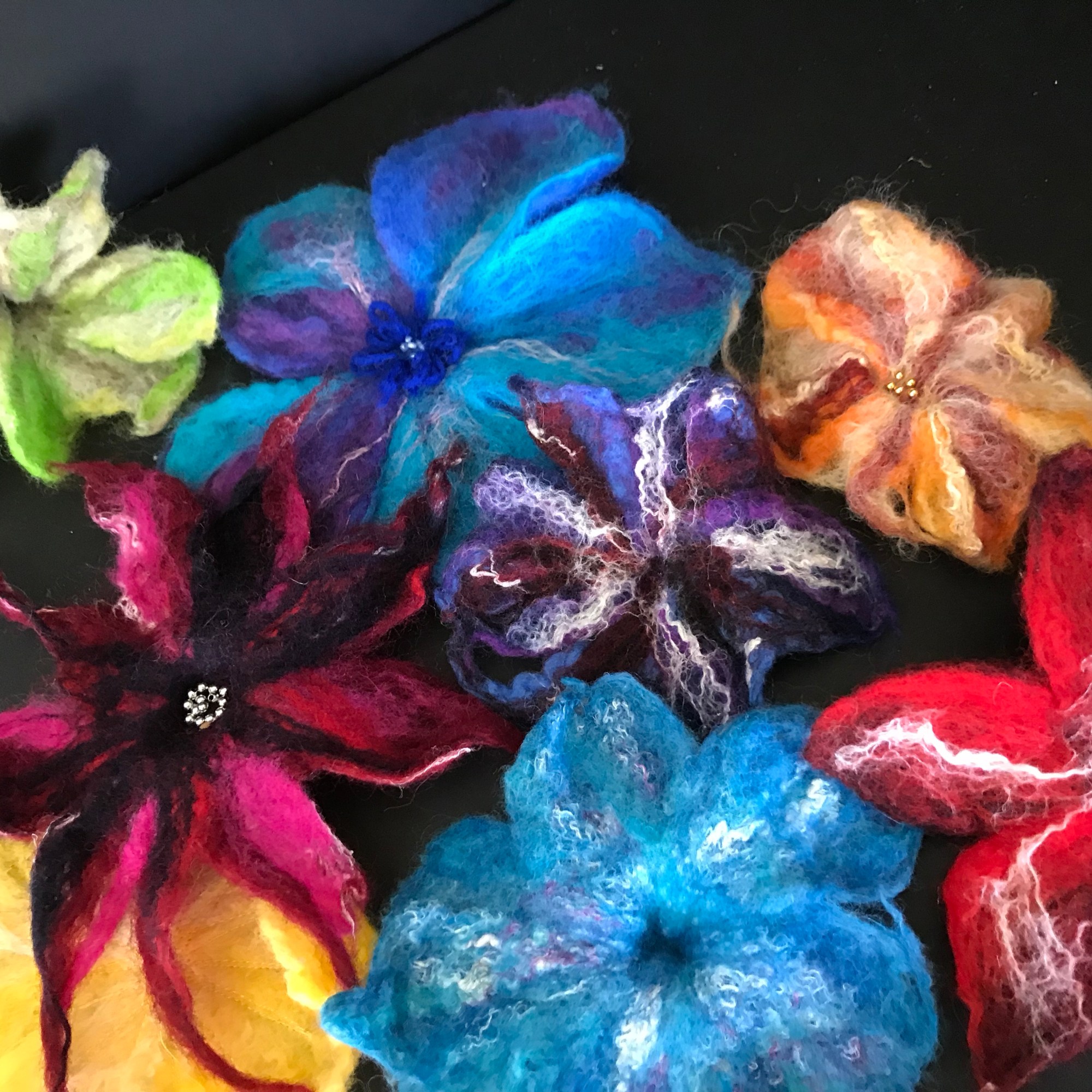 - made one or two wet felt flowers in different styles